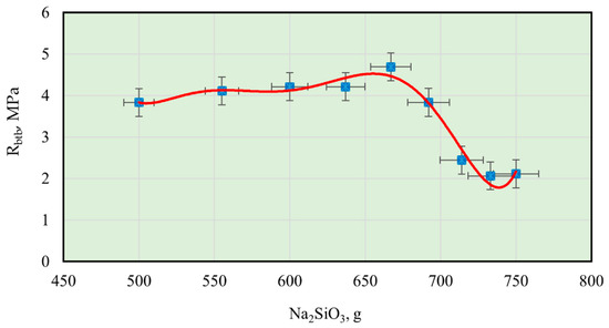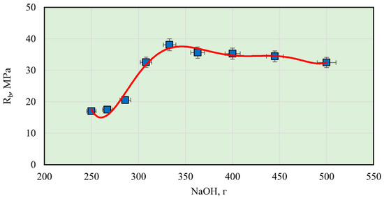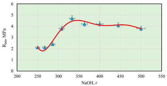 At the first stage of the study, the selection of the most-effective composition of the activator was carried out. The choice of activating agents was justified by their ability to provide a reaction medium with high alkalinity in an aqueous solution.