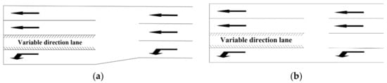 Variable direction lanes have become a frequent and innovative management tool used by traffic managers to address the congestion problems caused by the tide of turning traffic in China. On Chinese urban roads, the transformation of lane function is mainly used to achieve the transfer of traffic flow. It is a highly targeted control tool for turning tidal traffic to improve the efficiency of road traffic [1,2,3]. However, during the process, some drivers are unable to obtain effective information in time, generating problems such as lane-changing decision errors and low lane utilization.