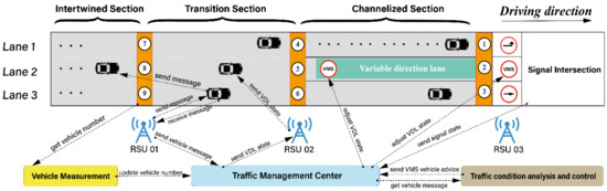 - The operational process of variable direction lanes in the I-VICS environment is proposed, and its steps are analyzed, which aims to provide a reference for the study of variable direction lane settings in this environment.