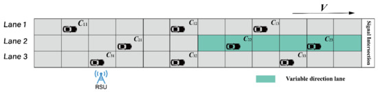 - Li denotes the i th lane, and the three-lane road can be divided into left-turning, variable direction, and straight lanes according to lane attributes from left to right, denoted by i = [1–3]∈{l,v,s}.