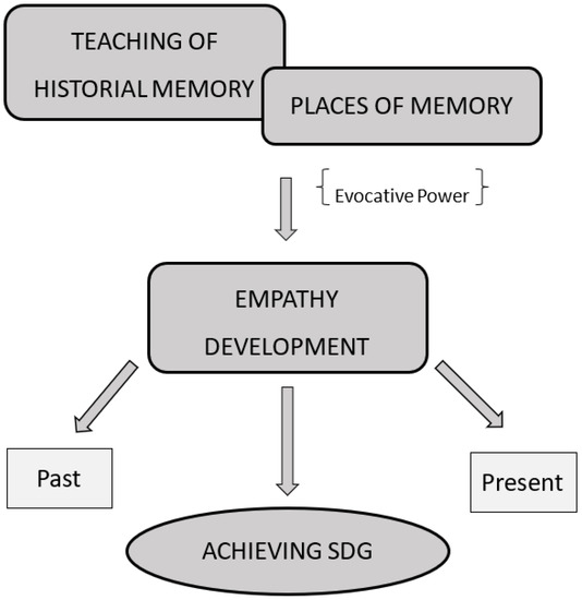 Finally, it is essential to refer to the very essence of memory, and its identification as past made present [42,43,44,45]. This was very much present in TG’s testimony, while JB noted the suitability of the theme of exile for establishing this connection between past and present, and agreed with MT, who took advantage of this relationship to work in depth on the theme of the current refugee crises. A final note on the multi-temporal function of historical memory helps to visualise the impact of the study of the past, with the perspective of acquiring ethical and civic values, in the achievement of SDG 16 in terms of the present.