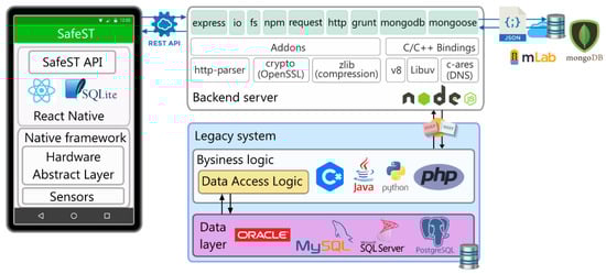 The assumption was that, in general, potential users have an already existing ICT system (Legacy system) that has been implemented using some alternative technologies (at our faculty, the existing ICT learning system has been implemented using PHP and MySQL database). Since features of the SafeST backend were released as RESTful web services, an adaptation of the proposed solution on the top of the legacy system could be done easily using rest/soap web services. Moreover, the local SQLite database was used on the client-side for storing basic data about users (identification parameters, parameters for system access) as well as results of some measurements before the synchronization with the central system is made. In general, the Android sensor framework supports a wide range of sensors for measuring environment parameters (motion detection and rotation detection, monitoring air temperatures, rotation detection, air pressure changes, monitoring dewpoint, absolute, and relative humidity) []. Through these sensors, dedicated software incorporates functionalities of external devices or sensors connected to peripheral I/O.