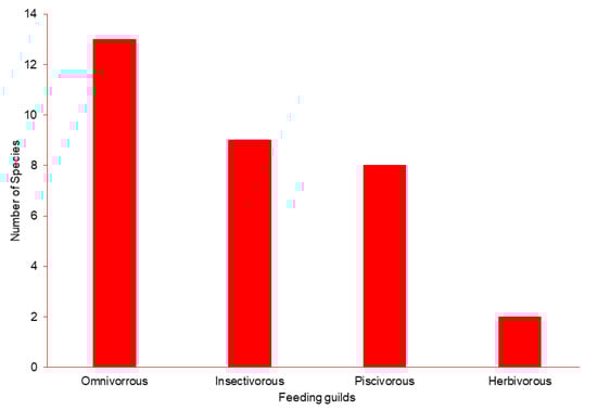 | 14 | Ardea cinerea Linnaeus, 1758 | Grey Heron | Ardeidae | LC | Piscivore |