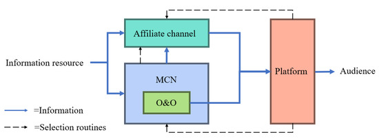 In terms of information flow as depicted in solid blue arrows, MCNs are able to push the selected contents to the affiliated channel and the action of gatekeeping can be operated during this step. The affiliate channels also receive information resource in an independent way, which are different with O&O belonging to MCNs. Actually, the relationship between MCNs and O&O is like TV stations and their channels. After the gatekeeping process, the selected information continuously moves to platform or affiliate channels for audiences. It is doubtless that platform’s routines influence gatekeeping behaviors of both MCNs and affiliate channel. As dotted in black arrows, it indicates the selection routines and need to consider when describing the relationship between the three subjects. To be an indispensable part, the MCN’s selection routines not only determine received information for O&O, but also affect the content production and distribution of affiliate channel.