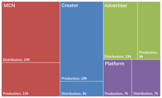Since 2005, multi-channel networks (MCNs) have been emerging as an independent institution affiliated with social platforms (e.g., YouTube, Facebook, Twitter, etc.). Depending on the huge amount of third-party providers, MCNs can offer services of audience development, content programming, creator collaborations, digital rights management, monetization, and sales [1,2]. According to AllTheResearch’s analysis, the global MCNs market is worth US$ 2943.0 million in 2018 and is expected to reach approximately US$ 4500.9 million in 2027 at a CAGR of 5.5% [3]. In China, the number of MCN agencies have exceeded more than twenty thousand in 2019, which increase 12.5 times compared to that in 2015 [4]. Meanwhile, the market size also increases from US$ 123.1 Mn (in 2015) to US$ 2584.6 Mn (in 2019) [5]. As an intermediaries between social platforms, advertisers and content creators [6], MCNs have significantly affected the ecology of social media [6,7,8] by cultivating the professional content producers and promoting the advertising deals [9].