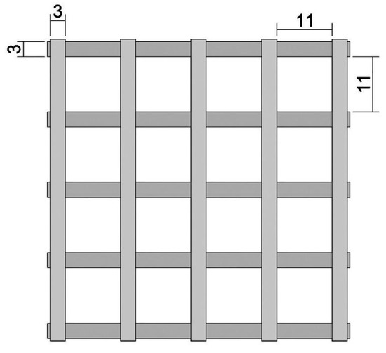 Finally, it is worth noting that the efficacy of FRLM reinforcement depends on the adhesion between the fabric and the matrix. Therefore, to assess this aspect, tensile tests were carried out on three coupons consisting of a matrix sheet, with dimensions of 500 × 65 × 10 mm3, in which the PBO mesh was embedded (Figure 5).