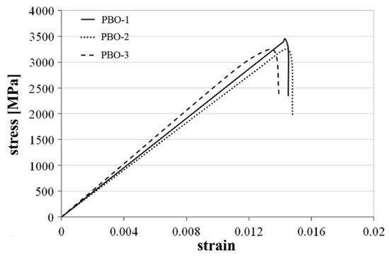 Stress–strain diagram of the tensile test of PBO-fiber textile.