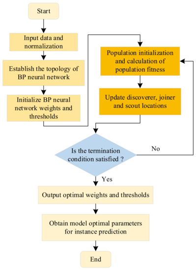This article uses the sparrow search algorithm to optimize the weights and thresholds of the BP neural network to obtain more accurate results. The specific realization process is shown in the following steps.