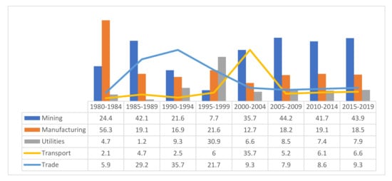 - Rehman, F.U.; Khan, M.A.; Pervaiz, K.; Liaqat, I. The causal, linear and nonlinear nexus between sectoral FDI and infrastructure in Pakistan: Using a new global infrastructure index. Res. Int. Bus. Financ. 2020, 52, 101129. [Google Scholar] [CrossRef]