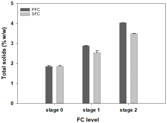 Total solids evolution in the concentrated fractions of PFC and SFC.