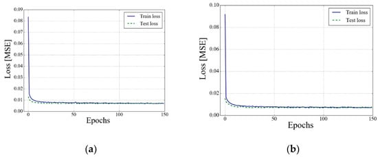 The comparison of train loss and test loss curves within 150 epochs is given in Figure 11. The mean squared error (MSE) measures the average squared difference between the predicted values and actual values, and it is used as a loss function. Train loss and test loss begin in the vicinity of 0.085 and 0.012 in the LSTM model, which has the best forecasting performance. Train loss and test loss start by 0.09 and 0.018 for Bi-LSTM and GRU model similarly. In terms of the RNN model, the values of train loss and test loss begin at 0.14 and 0.03, respectively.