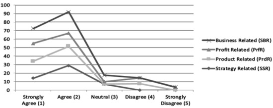 The survey comprised ten close-ended questions and then the respondents were asked to rate each factor in a Likert Scale, which ranged from 1 to 5 (1: Strongly Agree, 2: Agree, 3: Neutral, 4: Disagree, and 5: Strongly Disagree). However, to keep the survey convenient for the respondents, there is a list of relevant factors that was used in the questionnaire and these factors for business sustainability were selected from the literature review. Semi-structured interviews were conducted at the end of data collection to fine-tune the survey findings. The summary of collected data has been presented with the graphical representation and descriptive statistics and then the proposed model has been developed through profound quantitative analysis, such as two-layer multiple regression through SPSS for both buyers and sellers.