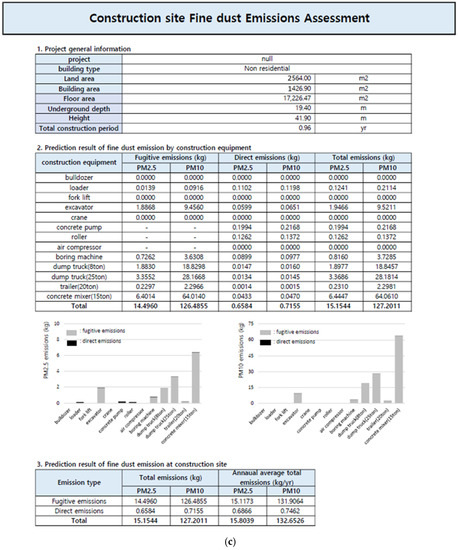 - A case study was performed using the developed system, and the fugitive and direct emissions of PM2.5 and PM10 were calculated for construction equipment.
