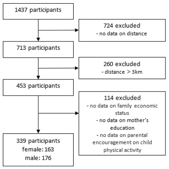 - D’Haese, S.; De Meester, F.; De Bourdeaudhuij, I.; Deforche, B.; Cardon, G. Criterion Distances and Environmental Correlates of Active Commuting to School in Children. Int. J. Behav. Nutr. Phys. Act. 2011, 8, 88. [Google Scholar] [CrossRef] [Green Version]
