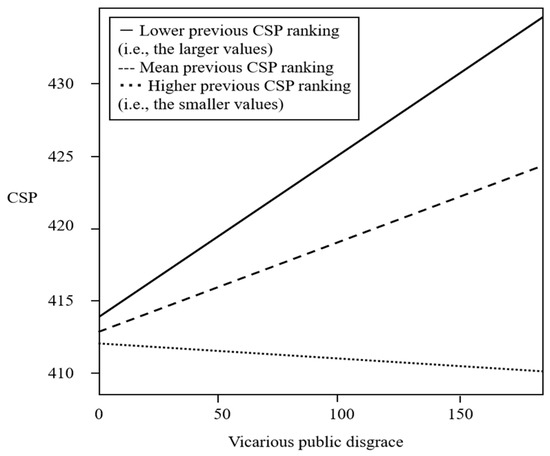 A focal organization’s poorer previous CSP strengthens the positive influence of vicarious public disgrace on its CSP.