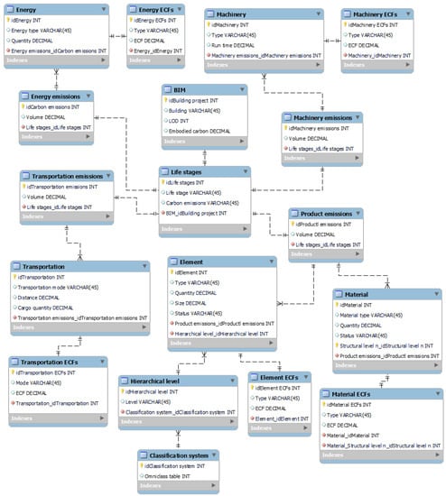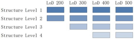 Many generic LCA databases are compiling direct data surveyed in a specific region (e.g., ICE database, Ecoinvent database, etc.). The AEC industry also widely adopts environmental product declarations (EPDs) as a method of reporting and sharing environmental data. However, the available LCA data usually refers to cradle-to-gate emissions and are at the material level. Therefore, an entire LCA database that is matched to the asset hierarchy classification within the BIM model is expected. Researchers suggested developing the data structure of the LCA database following the granularity of the BIM model, meanwhile directing towards the automatic compilation of data exchange by using a common naming of elements [43,47,48,49]. Cavalliere et al. [50] suggested using different LCA databases with different levels of details for the specific LoD of the BIM. Since different building elements may not be modelled with identical LoDs, one can mix the LCA databases for building parts and materials with different LoDs and match them according to the individual LoDs of the various BIM components.