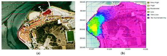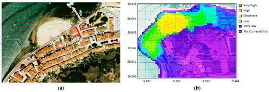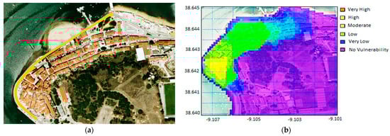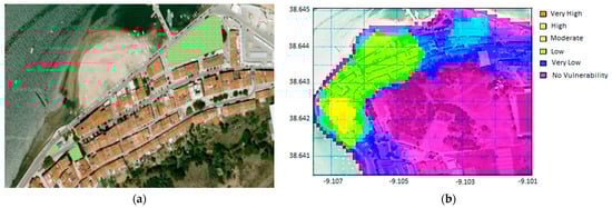 The Tagus estuary has a high potential for flooding from different sources along its margins, due to the intense occupation. This study was conducted in a restricted area (Figure 2) located in the south-eastern margin of the estuary, which was selected due to a record of flood episodes and relatively diverse land use occupation, with a total area of 491,127 m2 and 1170 m of margin length. The territorial occupation of this area is associated with relevant industrial sites that were built in Seixal (steel industry). Due to this important industrial presence, urban areas grew nearby. Currently, some management territorial plans indicate the intention of transforming a large part of these industrial sites into urban areas (which includes residential, services and logistics facilities) (Figure 2).