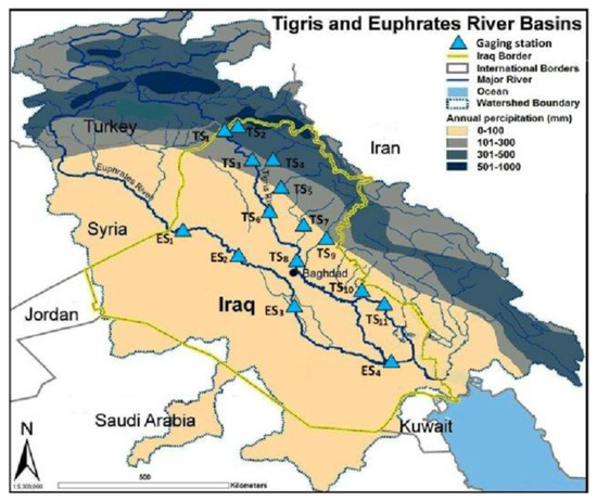 Tigris–Euphrates Rivers basin (source: Issa [17] (p. 424)).