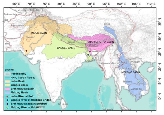 Major South and Southeast Asian river basins (source: Hasson [23] (p. 4)).