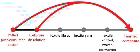 Diagram showing the technique using cellulose dissolution and milled post-consumer cotton for the fabrication of finished textile composites [21].