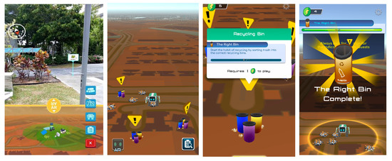 In this section, we present a mobile game that we developed with the aim of promoting climate action and encouraging sustainable behaviour through a fun and engaging experience. By utilising augmented reality (AR) together with a geolocation function, the game is designed to be educational, engaging, and explorational through an immersive experience. The game is targeted at age groups between 12 to 65 and is set in a post-apocalyptic world. The proposed game is now available in the Google Play Store (https://play.google.com/store/apps/details?id=com.SUTDGameLab.ProjectPear) (accessed on 15 December 2021) and Apple App Store (https://apps.apple.com/sg/app/project-pear/id1504398116) (accessed on 15 December 2021) for free.