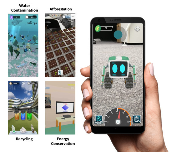 - Lee, J.J.; Ceyhan, P.; Jordan-Cooley, W.; Sung, W. GREENIFY: A Real-World Action Game for Climate Change Education. Simul. Gaming 2013, 44, 349–365. [Google Scholar] [CrossRef]