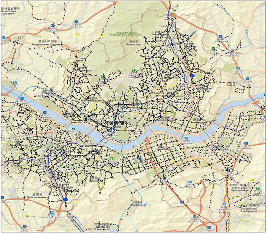 Figure 1. Metro map (source: Johomaps) and bus map in Seoul.