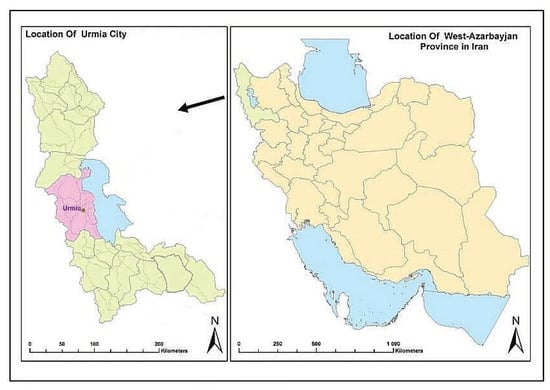 In order to investigate the feasibility of the proposed approach in this research to solve the location problem, it has been utilized to select the optimal landfill for medical waste in a real area. Urmia is a big city in northwestern Iran, the capital of the province of West Azerbaijan (Figure 2, Point A in the map shows Urmia). According to the 2016 census, with a population of 736,224, it is the tenth most populous city in Iran. Urmia, with an altitude of 1332 m, is located west of Urmia Lake, at the foot of Garlic Mountain and in the middle of Urmia plain. The weather in Urmia is relatively hot in summer and cold in winter. Urmia, with its privileged geographical position, is located 20 km from Lake Urmia. It is surrounded by martyrs, Moon Mountain, Ali Panjeh Si Mountain, and Ali Iman Mountain. In fact, Urmia is located between Lake Urmia and the wall of the mountains in the west of the province. The city of Urmia is located on an orbit of 37 degrees and 32 min in the northern hemisphere of the equator. It is also located on a 45-degree meridian 2 min east of the Greenwich meridian. In the city of Urmia, about 2.5 to 3 tons of infectious waste is produced daily, and all private and public hospitals in Urmia are equipped with a device for decontaminating infectious waste, and infectious waste is transferred to the landfill after decontamination. Hospital wastes include infectious wastes, pathological wastes, sharp objects, pharmaceutical wastes, carcinogenic wastes, chemical wastes, radioactive wastes, high-pressure gas capsules, and wastes containing heavy metals.