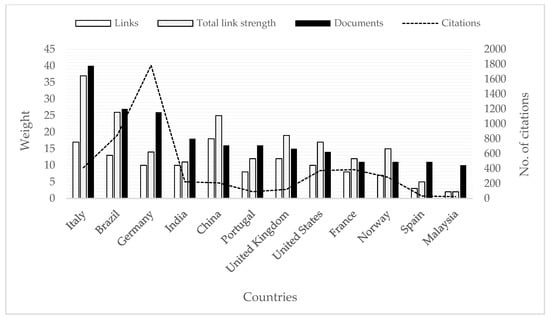 Figure 3 shows the country-wise growth of publications on this topic of concern. A total of 59 countries contributed to the area of SM 4.0, with the top 10 leading countries responsible for 78% of the total publications. Italy (40 documents), Brazil (27 documents), Germany (26 documents), India (18 documents), and China (16 documents) had been the top 5 prolific countries in terms of the number of published documents. Among them, Malaysia, with 10 documents, was the only developing country which is ranked 12th and came across the topmost productive countries. Nowadays, the benefits of international collaborations not only extend the network and share knowledge and expertise but also promote the rank.