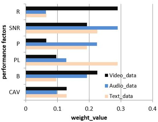 Therefore, the same methodology used for text and audio services, positive- and negative-ideal solutions, helps to calculate the weight mentioned in Table 16. Table 17 and Table 18 analyze the channel by using video services.