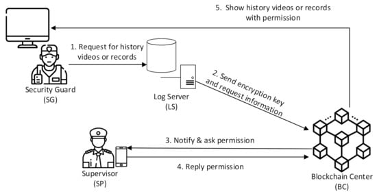 - Blockchain Center (BC): A blockchain center composed of multiple device nodes that are storing all the records from IoT. All the involved parties must register in the blockchain center. The monitoring records of the community are saved in the blockchain center. The records in the blockchain center are unforgeable and verifiable. When the parties request to view the specified record in detail, the blockchain center will send votes to other occupants. If more than half of the votes are agreed, the parties can view with the security guard.