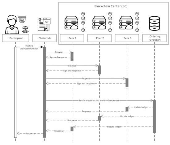 In recent years, more and more scholars or industries have begun to use blockchain as the basis of system architecture to execute or store records because of the advantages of blockchain, such as decentralization, unforgeable data, traceability, and clarifiable illegal records. The type of blockchain can be separated into public, private, hybrid blockchain [18,19]. The public blockchain is a high decentralized blockchain, permissionless, with high power consumption, and low throughput for executing smart contracts. Conversely, the private blockchain is a low decentralized blockchain, access controlled, low power consumption, and high throughput. The representative private blockchain today is Hyperledger Fabric [20]. There are more and more applications implemented based on the Hyperledger Fabric, such as hospital information system [21], access control system [22], supply chain management [23], etc. In addition, Chen et al. have also proposed blockchain-based schemes in brand clothing industries [24] and insurance industrial [25].