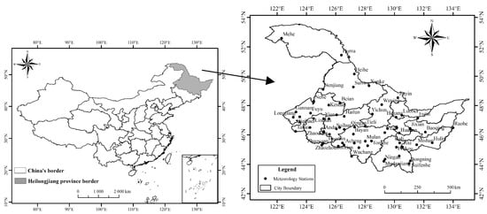 The study area and distribution of 62 meteorological stations in Heilongjiang Province, China.