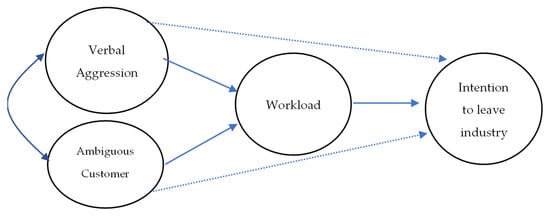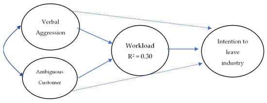 Regarding the hypotheses, the analysis suggested that verbal aggression and ambiguous customer expectations were significantly related to turnover intentions, and this was fully mediated through the workload construct; thus, support was found for all five hypotheses. Table 4 provides a breakdown of the results by hypothesis.
