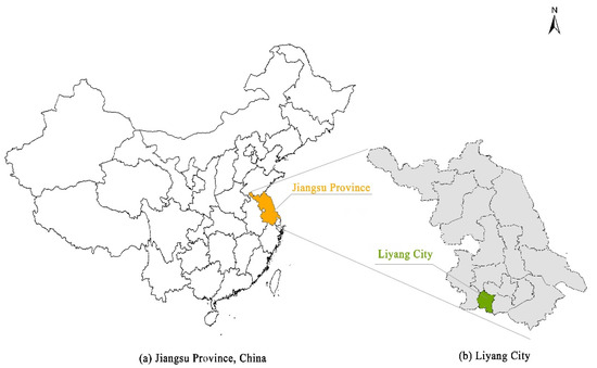 Location of Liyang: (a) Jiangsu Province, China; (b) Liyang City.