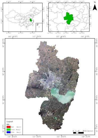 With a total area of 11,445 km2 and an arable land area of 562,900 ha, Hefei is an important agricultural area in China. Cultivated land is mainly planted with grain crops, with the rotation of grain and non-food crops. The northern part of the study area is mainly planted with wheat, and the cultivated land in the western part of the study area uses a rotation of wheat and commercial forests.