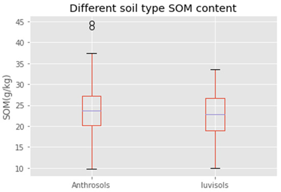Box plot of SOM content in different soil types.