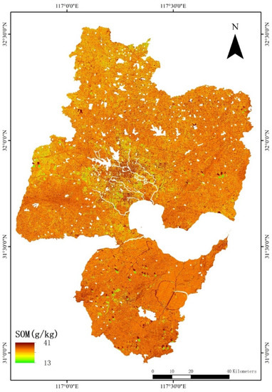 In this study, we selected Hefei City, Anhui Province, China as the research area to explore the prediction accuracy of SOM based on multi-source data, such as multi-spectral data, elevation, slope, vegetation index, cultivated land planting situation, and soil type. Our aim was to find the most accurate, fastest, and most stable SOM content inversion method suitable for farmland soil in this research area, to provide a valuable reference for the spatial estimation of SOM content.