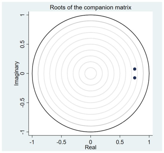 We need to conduct impulse response analysis to analyse further the short-term impact of green credit and carbon emissions. However, the stability of the model needs to be tested before impulse response analysis. As shown in Figure 5, all eigenvalues are within the unit circle, indicating that the model is stable and can be used for impulse response analysis.