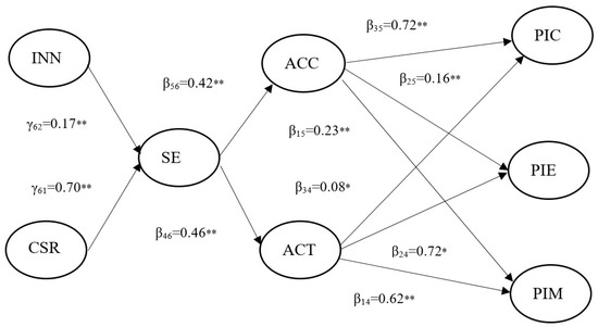 | H6:ACC→PIE | 0.25 | 0.07 | 3.50 ** | Supported | 0.16 | 0.10 | 1.61 | Not Supported |