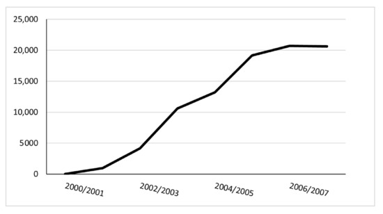 Another extremely interesting aspect of this phase, creating the basis for the future development of the “private” programs [10], is the way circularity was shaped within the framework of the TMPs. Even though the Romanian–Spanish bilateral agreement did not openly promote it, how it was implemented encouraged the circularity of workers. Basically, the employers could ask the best workers to return the next season. In this case, migrants signed the contract for a new season at the Spanish Embassy/Consulate, without having to go through the entire selection process again. This was definitely an advantage for the migrant because it eliminated selection costs and the uncertainty related to its result, while also excluding the Romanian authorities from the process (which reduced their capacity to intervene) and, more importantly, built a direct link between employer and the future employees while they are abroad. If one looks at the data provided by Romanian and Spanish sources, the difference in the total number of contracts signed by Romanians is striking (more than 20,000 between 2000 and 2008). One probable reason for this variance has to do with the number of contracts signed by Romanian workers directly with their Spanish employers. The mechanism not only allowed for circularity, but also set up the conditions for further development of a direct relationship between employee and employer, independent of the mediation of Spanish and/or Romanian migration authorities [7].