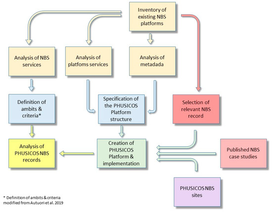 The following method is a multi-steps approach (Figure 1). The first stage is to realize an inventory of existing and accessible NBS platforms. The analysis of the existing metadata within these platforms is used as a guide for the identification of the different items to be treated. A specification of the PHUSICOS platform is then realized followed by the creation and implementation of the prototype.