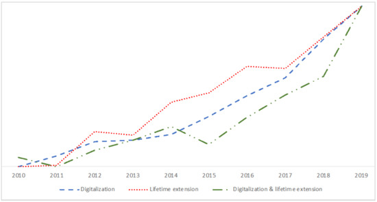 Trends of publications about “digitalization” and “lifetime extension” (2010–2019).