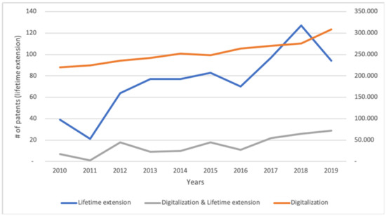 Thereafter, we made a focus on the patents related to digitalization and lifetime extension collecting information from Lens Patent e Google Patent. We find an increasing trend as shown in Figure 7 confirming the higher interest on the topic not only for the academic sector but also for the market.