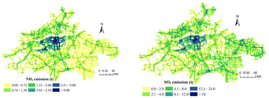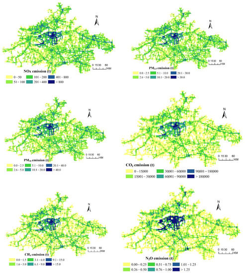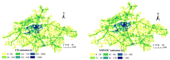 Spatial distributions of vehicle emissions in the Central Plains Urban Agglomeration (2015).