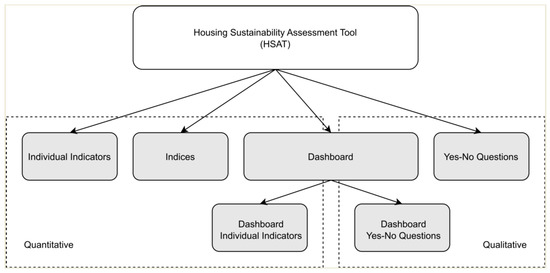 The housing sustainability assessment tool (HSAT) structure in terms of particular assessment methods (indicators).
