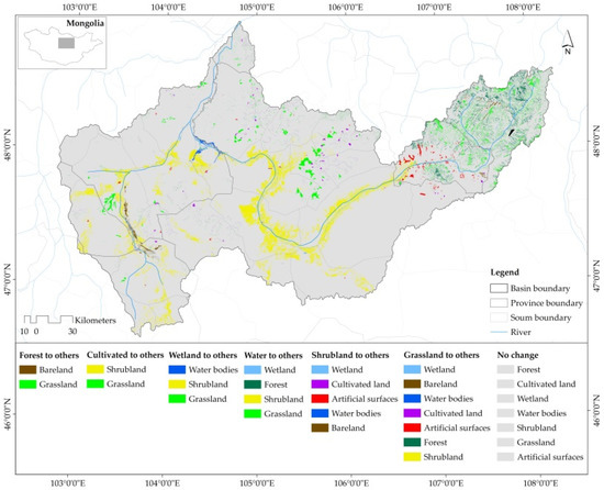 Dorjsuren, B.; Batsaikhan, N.; Yan, D.; Yadamjav, O.; Chonokhuu, S.; Enkhbold, A.; Qin, T.; Weng, B.; Bi, W.; Demberel, O.; et al. Study on Relationship of Land Cover Changes and Ecohydrological Processes of the Tuul River Basin. Sustainability 2021, 13, 1153. https://doi.org/10.3390/su13031153