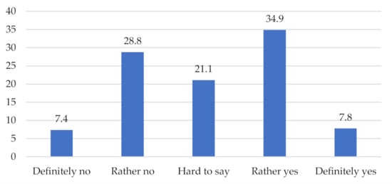 Another point reviewed was the question of changing one’s purchasing decision from a product that respondents were determined to buy to one that they were not initially convinced to buy if it was influenced solely by reviews read online (see Figure 3). In terms of respondents’ responses, 42.7% of respondents “rather” or “definitely” had such a situation in the past, while 36.2% claimed the opposite. Furthermore, 21.1% of respondents found it difficult to answer the question.