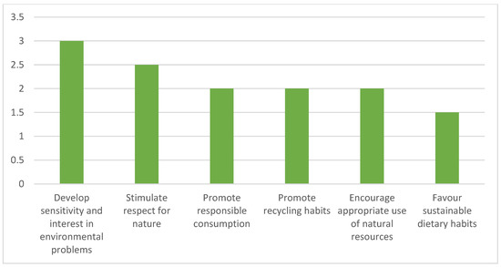 In the objectives section, we included those necessary to raise students’ awareness of environmental problems and to boost their interest in actively attempting to solve these problems. The items refer to the use of sources of information, critical thinking, entrepreneurial spirit, personal initiative, participation, planning, decision-making, and accepting responsibilities.