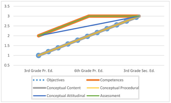 The emphasis is placed on how content is developed and sequenced in the different educational levels under analysis. This allows us to establish the level of knowledge that will be acquired by future citizens.